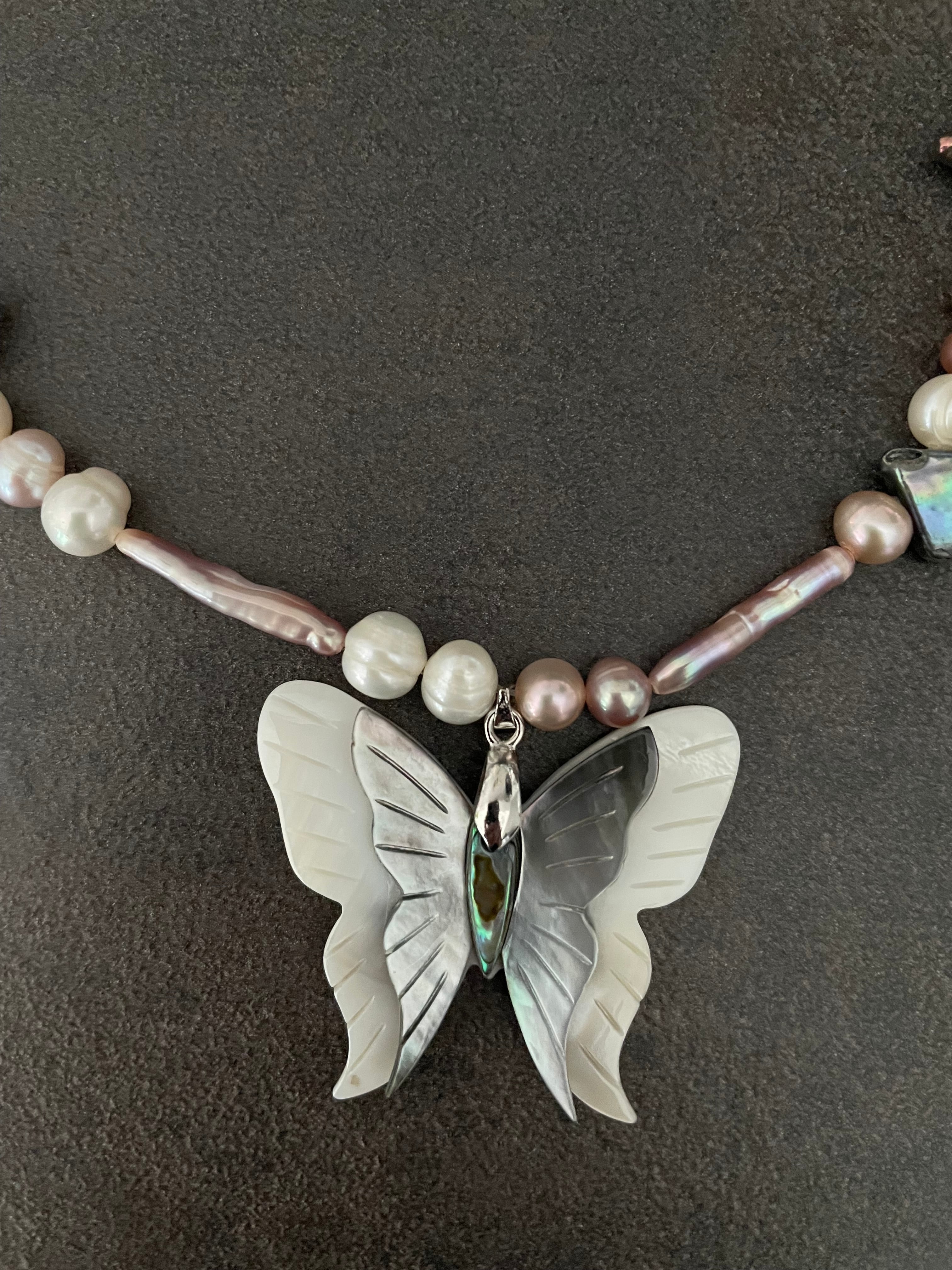 蝶々淡水パールネックレス