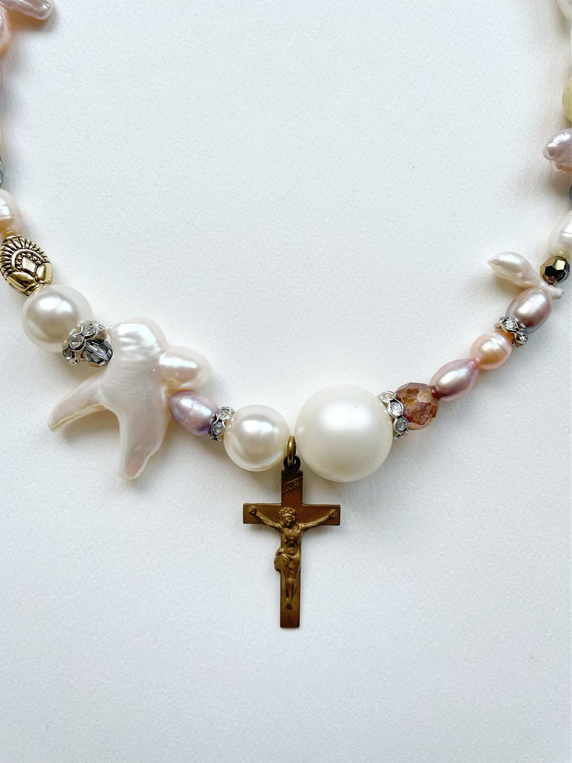 freshwater pearl cross necklace