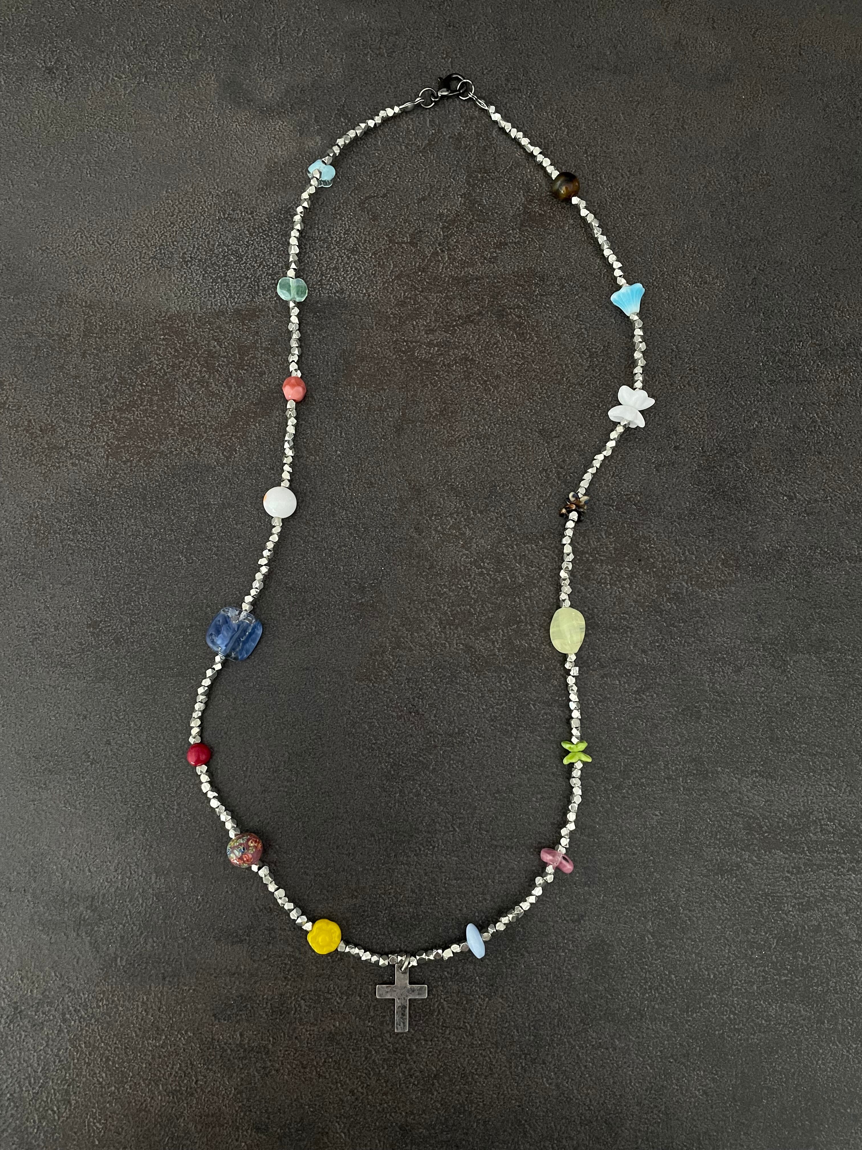 silver diamond cut beads long necklace
